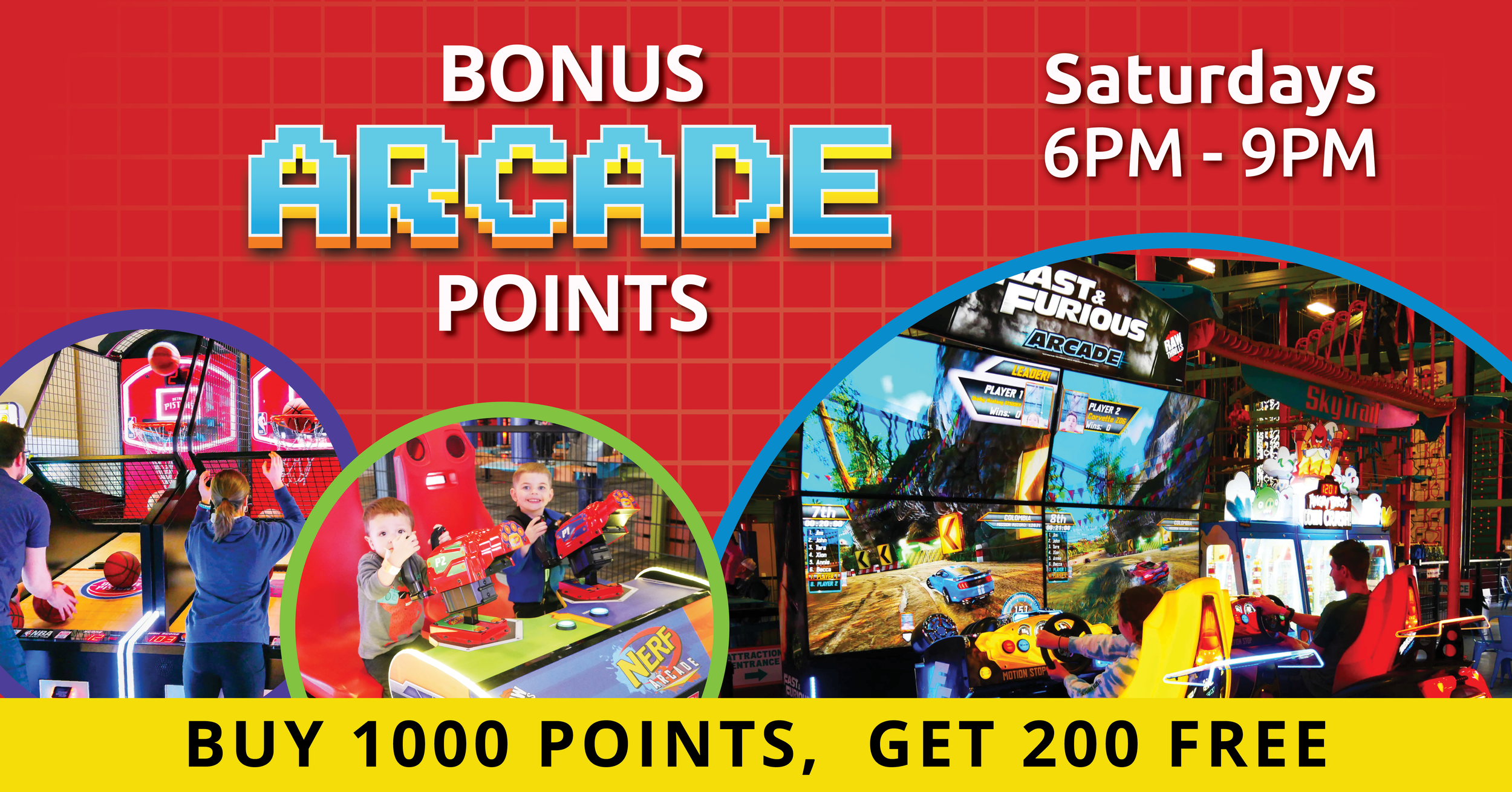 Enjoy bonus arcade points at Allegan Event every SATURDAY from 6 Pm to 9 pm and increase your prizes!