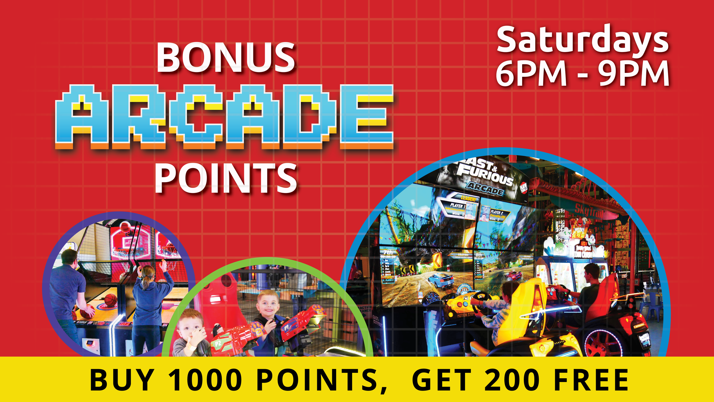 Saturday Evening Bonus Arcade PointsPurchase 1000, receive 200 FREE